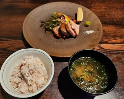 職場の食事会で利用しました。先付から椀物、主菜、飯物など季節の食材を生かした料理はどれも美味しく、器も含め美しさがありました。焼物の鰻白焼きと焼き落花生豆腐や主菜のとちぎ和牛みすじの薪焼きは特に美味しかったです。みすじは適度に脂がのっており、柔らかさと旨味を感じられました。ドリンクもワインや日本酒の取り揃えもよく大満足です。以前より気になっていたお店だったこともあり、期待値を上回る美味しい料理と素敵な空間で楽しい時間を過ごせました。 (訪問:2025/09/06)