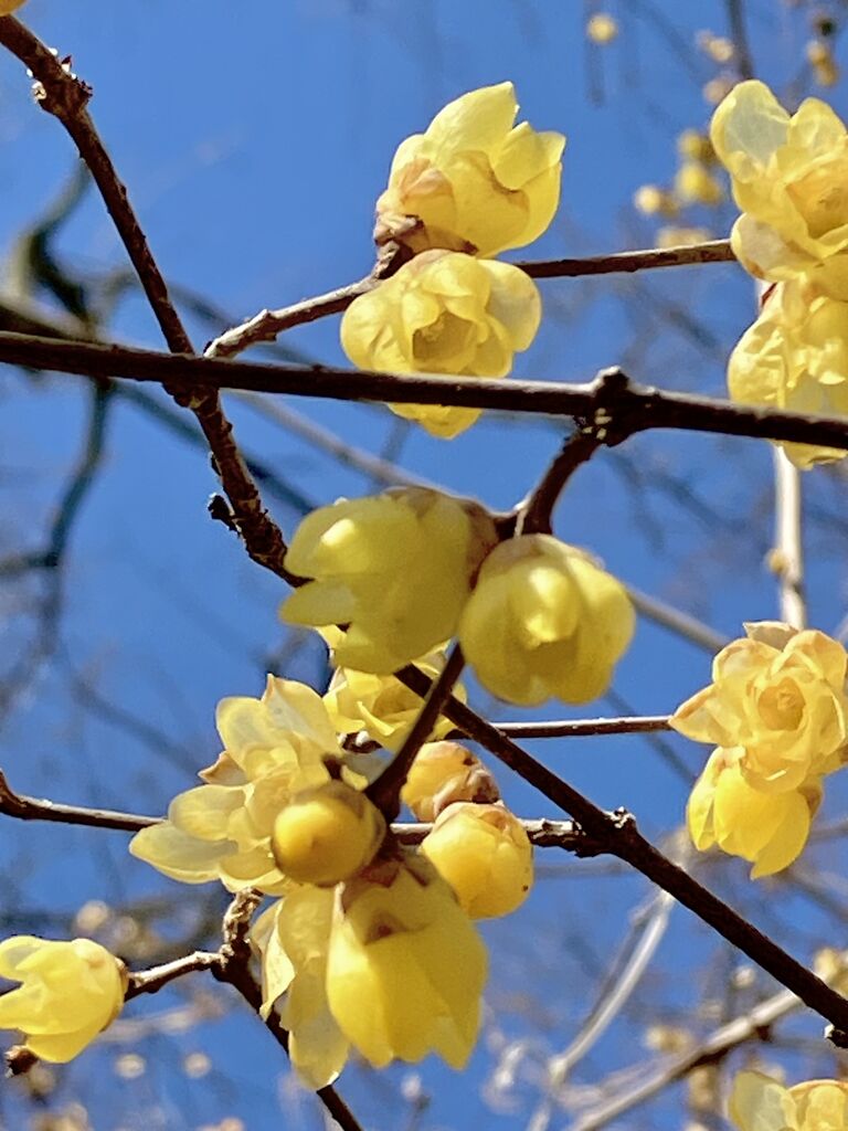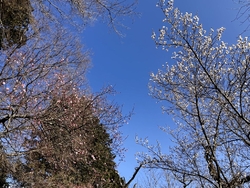 今日は、1月23日(金)の平日です。今日はとても寒く、富士山が見えると思い、見に来ました。思っていた通りに富士山が、ハッキリと見えました。そして、足元の斜面を見ると、ロウバイの黄色い花が咲いていて、近くに来ると、甘いいい香りがして、とても気持ち良かったです。他にも、紅梅、白梅が咲き始め、陽だまりでは、スイセンも咲き始めました。今回は、すごく条件がそろって、最高の気分でした。 (訪問:2026/01/23)