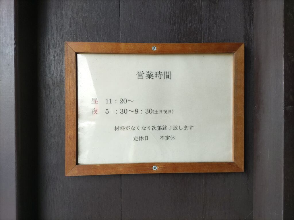 通常 11:20~14:00 土曜日 11:20~14:00 17:30~20:30 日曜日 11:20~14:00 17:30~20:30 祝日 11:20~14:00 17:30~20:30 ※材料がなくなり次第終了 |