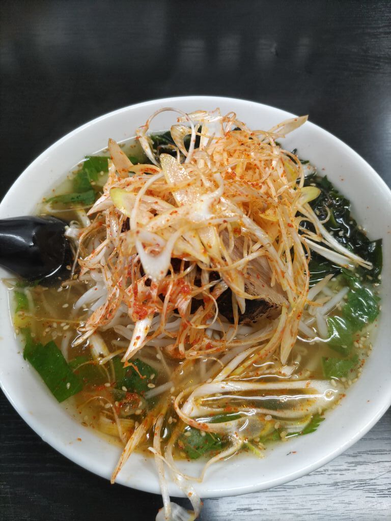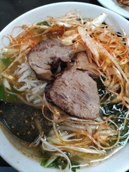 米沢ラーメンのお店で、いつも行列ができている人気店です。私達も並びましたが、さほど待つことなく中に入れました。並んでいる時に注文を聞きにきてくれるので席に着いてからすぐ運ばれてきました。中華そば・辛ネギ塩ラーメン・塩そば大盛り・餃子を注文しました。私がいただいた辛ネギ塩ラーメンのネギをかき分けるとチャーシューが現れます。厚切りにびっくり。直前にバーナーで炙り、香ばしさがプラスされホロホロで美味しかったです。さらに大葉が入っていて爽やかでした。餃子は付属の味噌・辛味噌をお酢に溶いてタレを作ります。中々見ないスタイル面白かったです。 (訪問:2025/10/11)