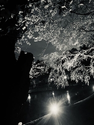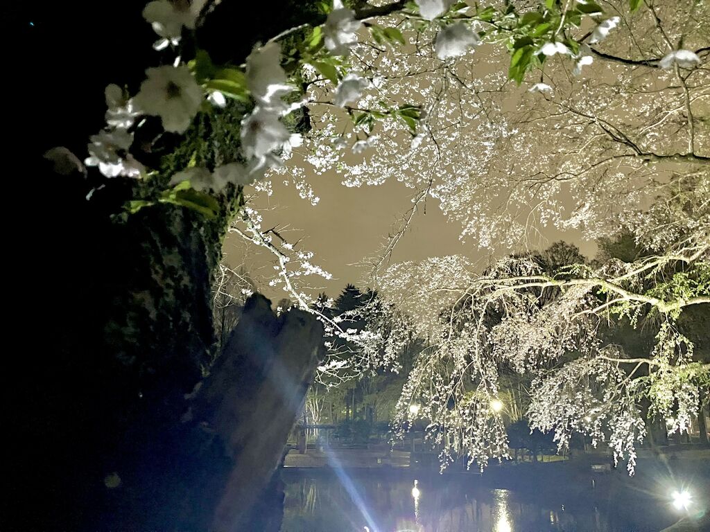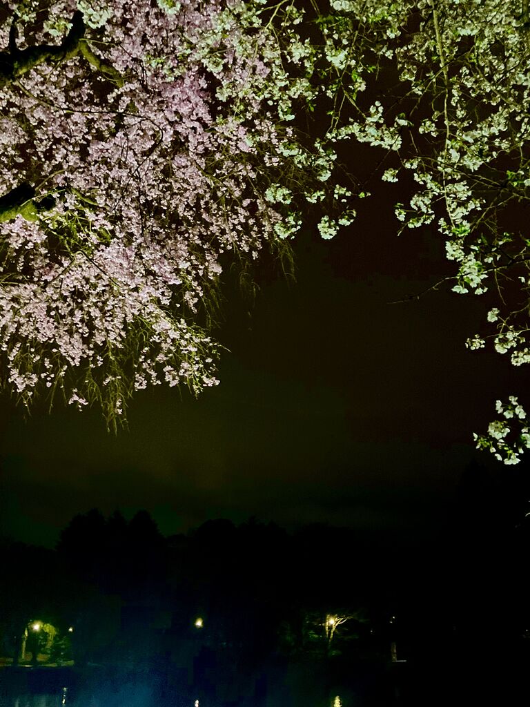 今年は、夜桜が見たくて・・・꒰ღ˘◡︎˘ற꒱✯︎*・☪︎:.。何とか葉桜になる前に来ることができました!ライトの当たり方によって色や濃淡が変化して昼の桜とは、全く雰囲気が違い落ち着いた美しさがありますね!暗闇に浮かび上がる桜の美しさにも感動(ღˇ◡︎ˇღ)水面に映る夜桜も趣きがあって素敵でした✿︎ (訪問:2026/04/05)