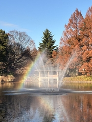 NEW紅葉は終わり、少しずつ冬の景色へ変わってきていました。帰り道に噴水の方を見ると、虹が出ていて思わずほっこり。みなさんへ幸せのおすそ分けができたらと思い、写真を撮ってみました♡ (訪問:2025/12/06)
