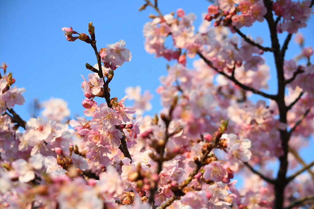 近くに行ったので、河津桜の様子を見に行きました。今週は少し寒い日が続いているせいか、開花のペースが遅れているような気がします。木によってほぼ満開だったり、ほぼ蕾だったりするので、少し長い期間お花見が楽しめそうです♪ (訪問:2026/03/11)