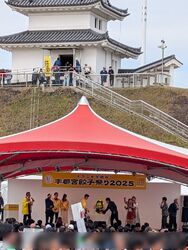 年に1度の餃子祭りに行ってきました。ステージでは山田邦子さん、ダイヤモンドユカイさんが登場、餃子の列に並びながら見られるという贅沢さ。ミヤリーにも会えたし出来たて餃子を満足するまで食べました。列に並んでいると城址公園の起伏をとても感じられます。 (訪問:2025/11/02)