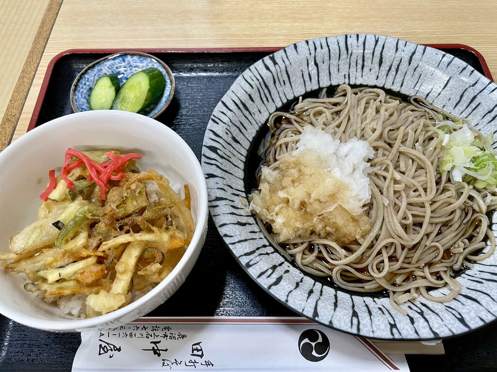 ランチで伺いました。日替わりのおろしぶっかけそばとミニかき揚げ丼のセットを注文しました。お蕎麦は細麺で美味しかったです。かき揚げ丼もサクサクでした。女性でちょうど良いかなという量ですね。 (訪問:2025/07/28)