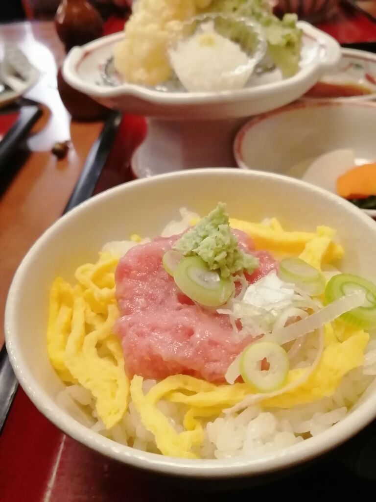 「ばんどう太郎に行きたい!」とお誘いを受け今日のお昼は3人で【ばんどう太郎】さん。このところ【ばんどう太郎】さん多めですが美味しいので「賛成♪」です。お昼時とあって激混みですが待ちます。続々とお客さんが来店…待ち席は座りきれないほどに…人気店ですね⤴⤴待ってる間にメニュー表を見て決めていたから着席してからは早かった。今日は平日なのでお得なランチメニューがあって嬉しいです。しかも[一日10食限定/得ランチ]がまだあってラッキーでした٩(˙▿˙ )۶[ミニマグロ丼・温or冷/うどんor蕎麦・天ぷら・漬物・サラダ・デザート・ドリンク付き]です。ほどなくして登場。わぁ(‘0’)美味しそう♪どれも美味しかったけどサクサク揚げたての天ぷらが特に美味しかったし、みたらし団子かと思いきやモチッと団子の中にこし餡が入った[のどごし団子]が思ってた以上に美味しかったです。今日も満足♡満腹♡ごちそうさまでした•ᴗ•ꕤ* (訪問:2026/01/08)