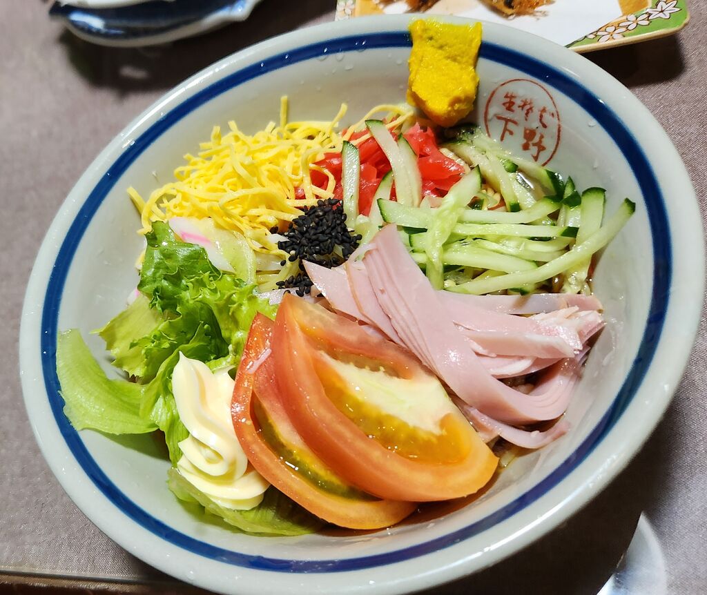 敬老会(会食会)の打合せがあり早く終わったので近所のメンバーで帰りに訪問しました。注文は「刺身1人前 1,100円×2」「いいだこの唐揚げ 750円」「川海老 650円」「生ビール 650円×5」「蕎麦焼酎 3,000円」「蕎麦湯割り 600円」あがりに「鴨ざる 1,150円」「冷し中華 1,000円×3」好きなおつまみで久しぶりに蕎麦湯割りいただきました。あがりは私以外は季節限定の冷し中華に。私は大好きな鴨ざるで御馳走様でした。 (訪問:2025/09/07)