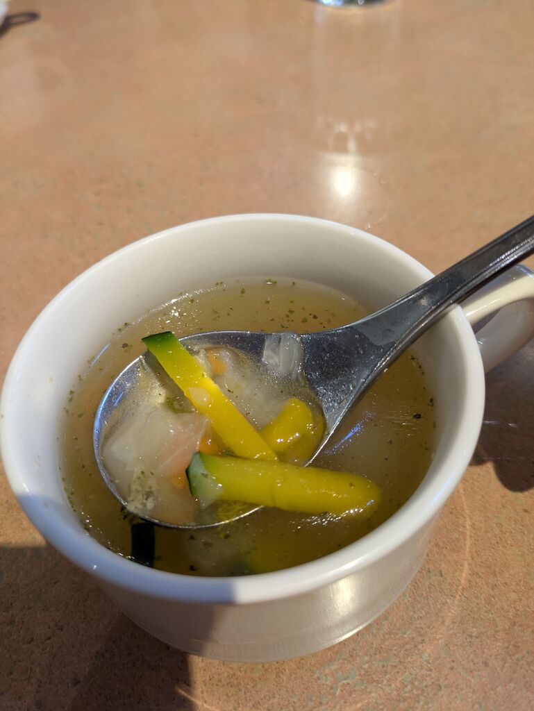 遅いお昼で2時少し前に伺いましたがそこそこの来客数。こんな時間に?自分もですが(笑)「ランチのお調子者」なるものを注文。ハンバーグ、チキン、ポテト、ブロッコリー。スープはバジルスープで野菜がゴロゴロ。そしてライスが相変わらず美味しかったです。こちらのライスは外食店の中では1番美味しく感じると私は思いますね。おかわりしちゃいましたよフフフ。 (訪問:2026/02/24)
