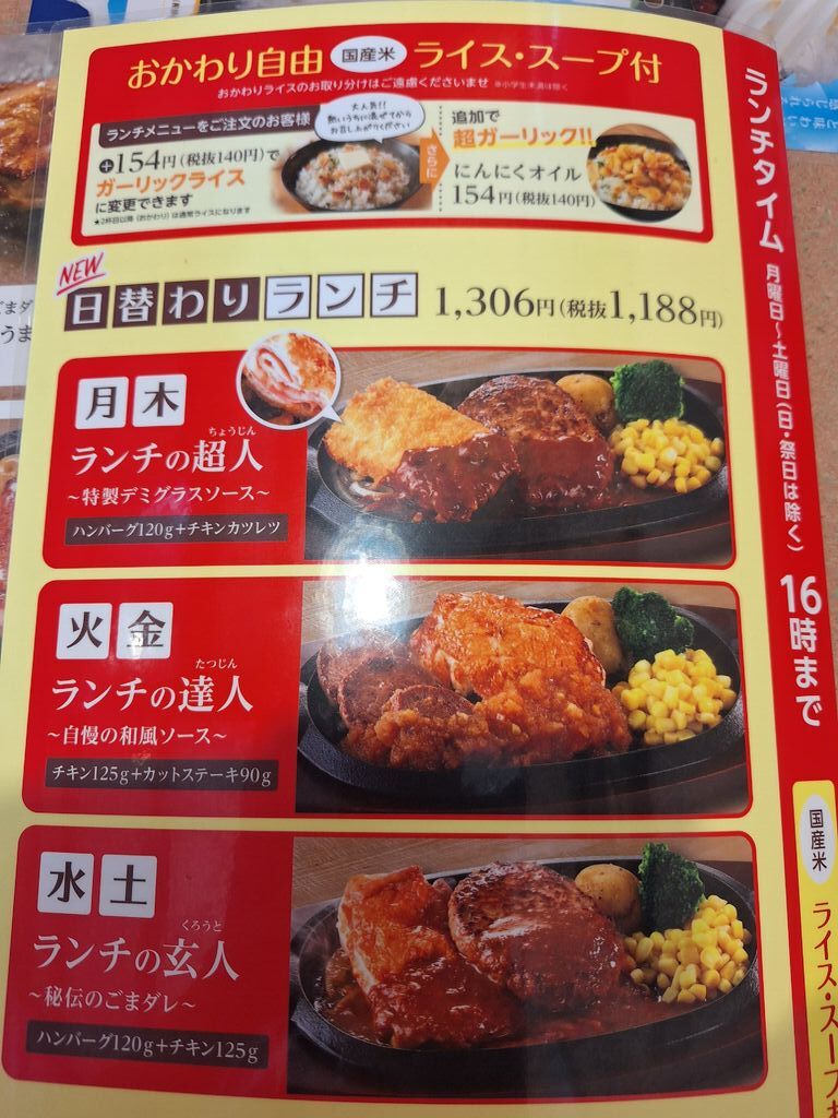 夏休み終わりに娘と平日ランチ訪問☆遅めでしたが、子連れの方やお仕事中の方やご高齢の方も居て混んでいて少々待ちました。私は日替わりランチの達人、娘はチキンコンビをチョイス♪嬉しい国産米100%おかわり自由!アプリの三味一体お誕生日特典クーポン①ドリンクバー無料②ミニソフト無料③ガーリックライスに変更無料を使用。更にアプリのくじのクーポンで、ドリンクバー無料、ミニソフト無料。ミニソフトは、チョコがけもOK。サービス満点で美味しくてお腹いっぱいで嬉しかったです(^ー^) (訪問:2025/08/29)