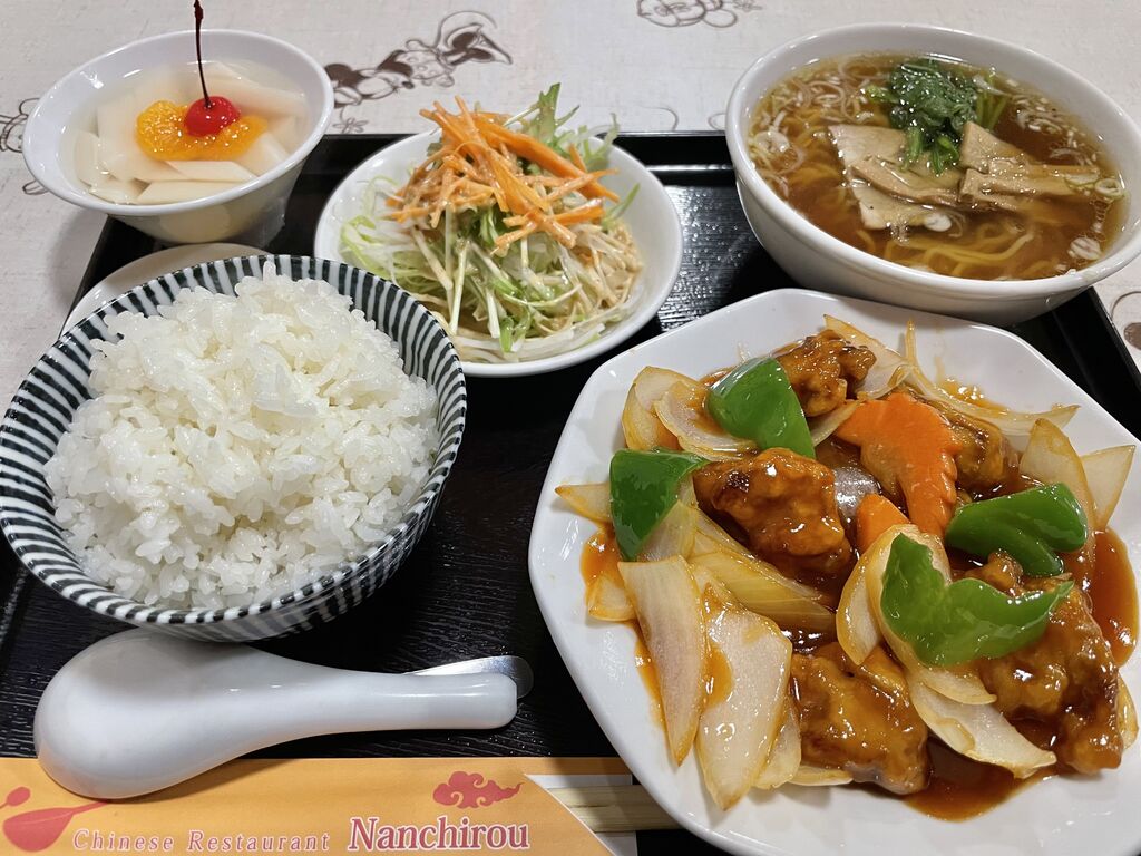 久々の訪問です。ここは本格中華ですが、熊ちゃん 酢豚が旨いと思います。今日は酢豚定食セットです。カリッ素揚げした豚肉、シャキシャキ感が残る玉ねぎ。旨いです。セットだと小ラーメンがスープ代わり。デザートまで付いて大満足です^_^ (訪問:2026/01/15)