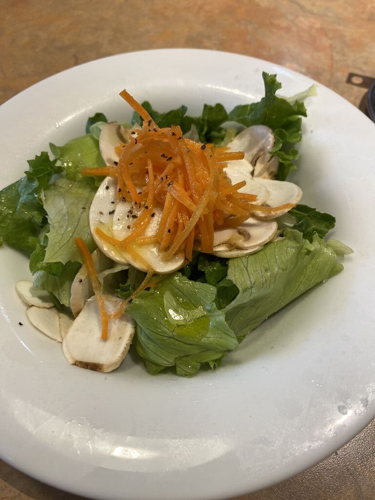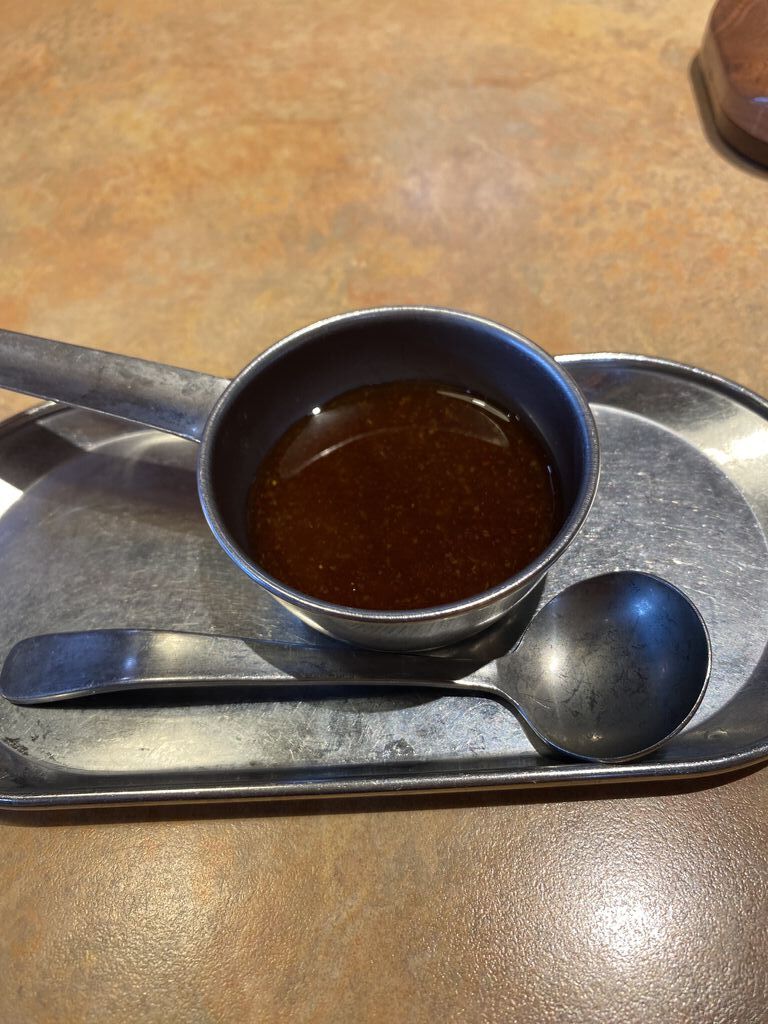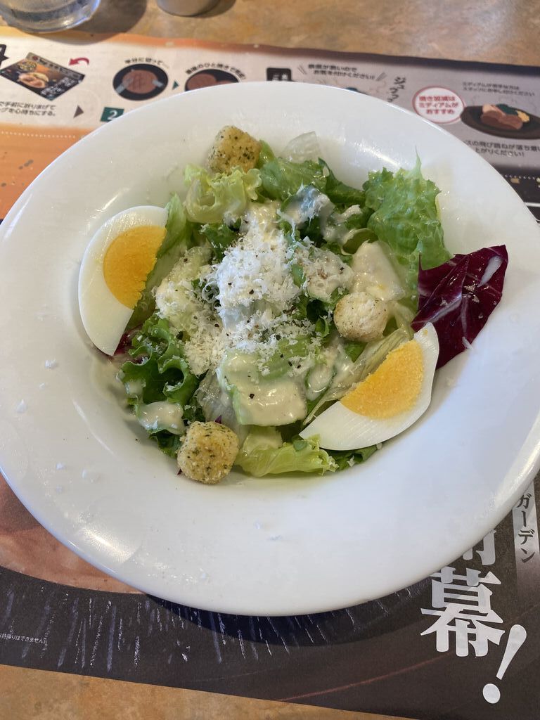 息子の誘いで3人でランチ訪問しました。(11時15分位)待たずに入店。それぞれに食べたいものを選び、私は黒チキン焼きとサラダセットCを。サラダはフレッシュマッシュルームサラダをチョイス。最初にサラダが到着。マッシュルームが沢山入って、バルサミコ酢、オリーブオイルのドレッシングが爽やかな食感になり◎、暫くしてメイン登場、黒胡椒がしっかり効いて、皮がパリパリ身はジューシーな逸品でした。別に醤油味のタレが付きますが、タレ無しでも味はしっかり付いているので、ちょっとだけ味変で頂きました。祭日だったので満席状態で、待機のお客様の列も有りました。 (訪問:2025/10/13)
