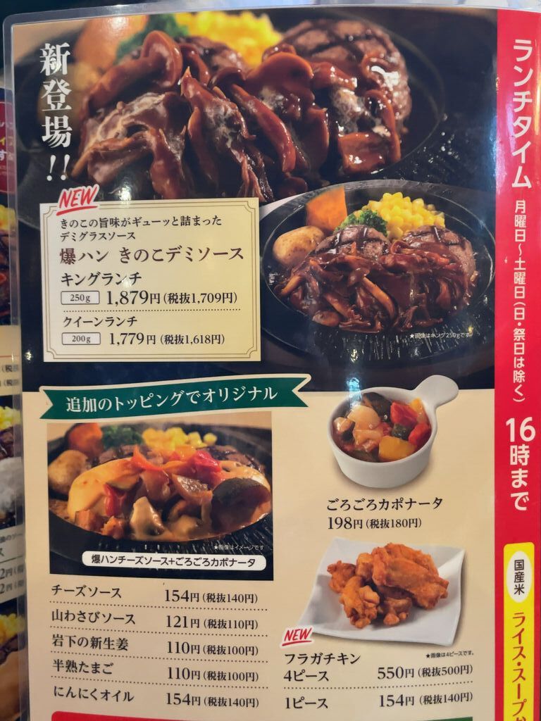 期間限定メニューの【爆ハンBREXチーズ】をいただきに行ってきました。鉄板が運ばれてきて目の前でチーズをたっぷりかけてくださいました♪チーズの濃厚な味わいがハンバーグと相まって美味し~!サラダセットのサラダにはクレソンが入っていてこちらも美味しかったです。 (訪問:2025/09/21)