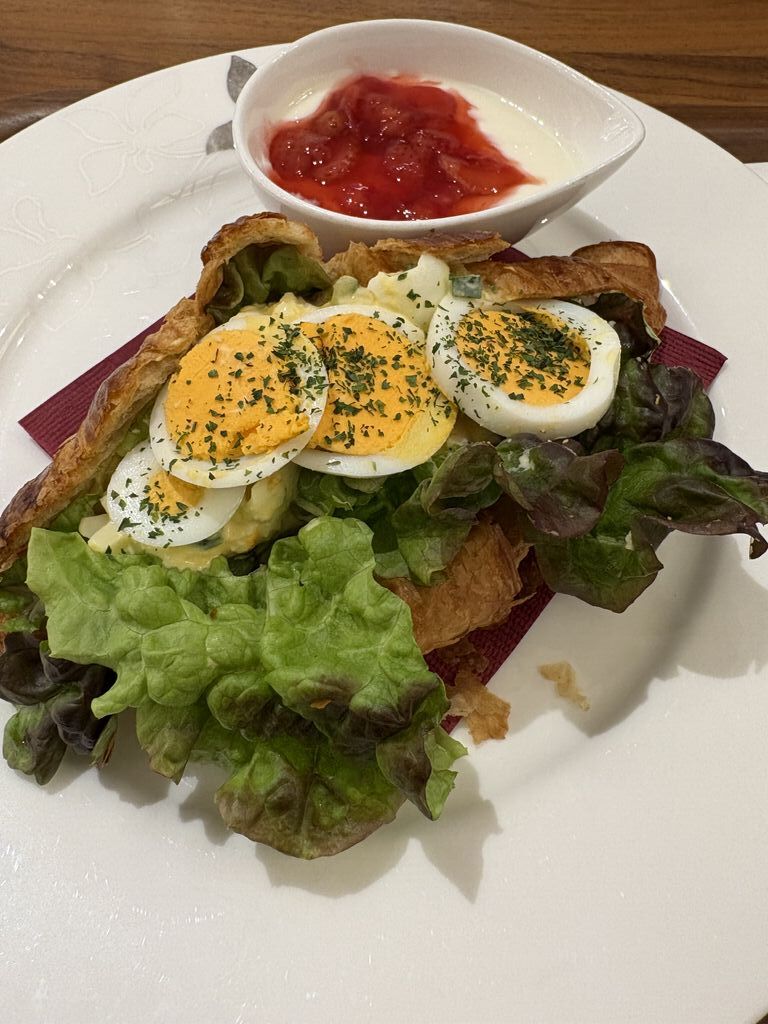今日のランチは、ゆで卵のインパクトでクロワッサンサンド!レタスも溢れるほど挟んであり食べ応えあります。今日もトチナビクーポンでコーヒーをいただき、ゆったりとしたお席で、お得に美味しいランチタイムが過ごせました。ごちそうさまでしたー! (訪問:2026/03/09)