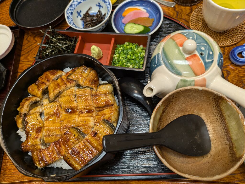 家族の食事会で利用しました。各々好きな物を頼み、私は特上うな重にしました。鰻が丸々1尾使われ、ご飯も大盛りにしたのでフタが閉まらない程のボリュームでした。小骨もなくフワッとした身がとても美味しかったです。山椒の香りもよく、タレも旨味があり大満足でした。一品料理のカキフライ、う巻きも大きくどちらもジューシーな味わいでした。座敷席に通してもらえたので、大人数でも落ち着いて食事を楽しむことができました。 (訪問:2025/03/02)