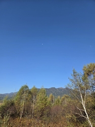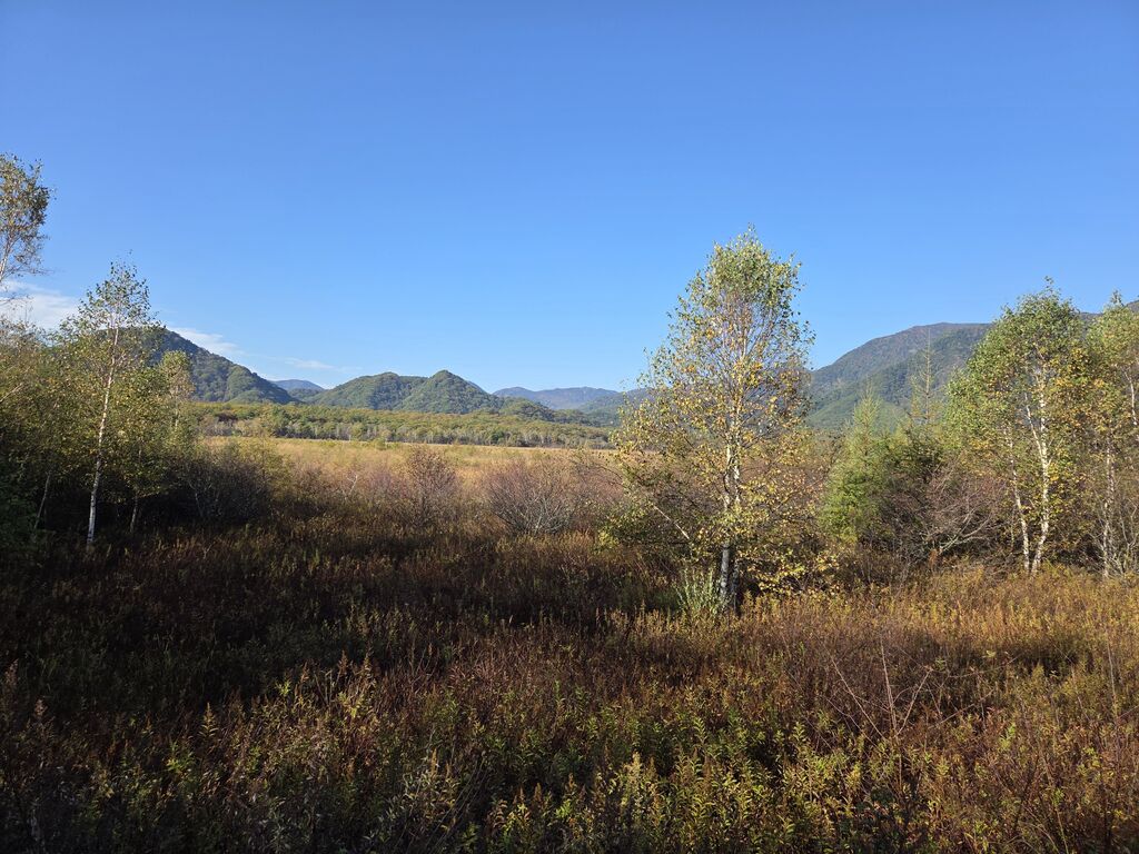 久しぶりに訪れました。なんと、戦場ヶ原の青い空にまだ早朝だったために月が出ていました。戦場ヶ原で月を見たのは初めてです。紅葉はまだでしたが、本当に天候にも恵まれて、大自然を満喫する事が出来ました。 (訪問:2025/10/12)