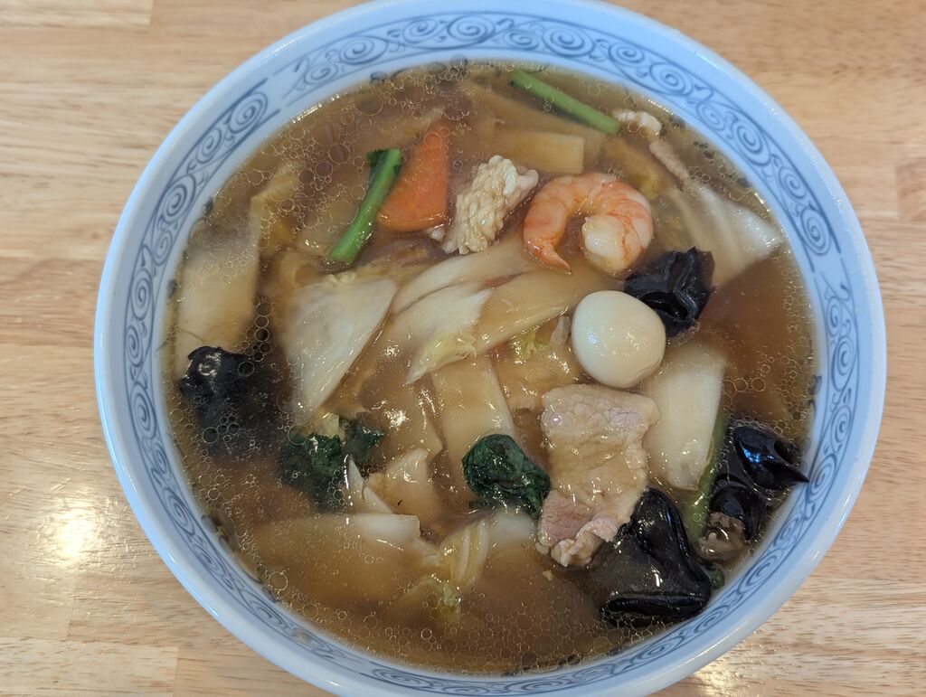 お店の前は車でよく通るのですが、また今度、次にしようとずっと先送りにして伺うことが出来ませんでした。この日は車の数も少なく感じて駐車場へ。お座敷、テーブル席は満席でしたがカウンターが空いていたので、直ぐに席に着くことが出来ました。私は【みちのくメン】と【餃子】を注文。しっかりとした醤油ベースのスープで具沢山のとろみの付いたあんかけラーメンです。細麺で大変美味しかったです。餃子は醤油で下味が付いているので、何もつけずに食べられます。勧められたお酢とラー油で食べても美味しかったです。ごちそうさまでした。 (訪問:2025/05/29)