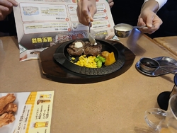 栃木県で有名な爆弾ハンバーグを食べに行きました。お正月なので、まだ11:20頃に伺ったのですが4組待ちです。30分程で席に案内してもらえましたが、どんどん外まで待ち人が並ぶ人気店です。熱々の鉄板で提供され、目の前で切り分けてくれ、音と香りで食欲が増します。ご飯はガーリックライスに変えることをお勧めします。スープやドリンクの写真を取り忘れてしまいましたが、ファミレスとは思えないグレードの高さです。美味しくいただきました。ご馳走さまでした。 (訪問:2026/01/02)