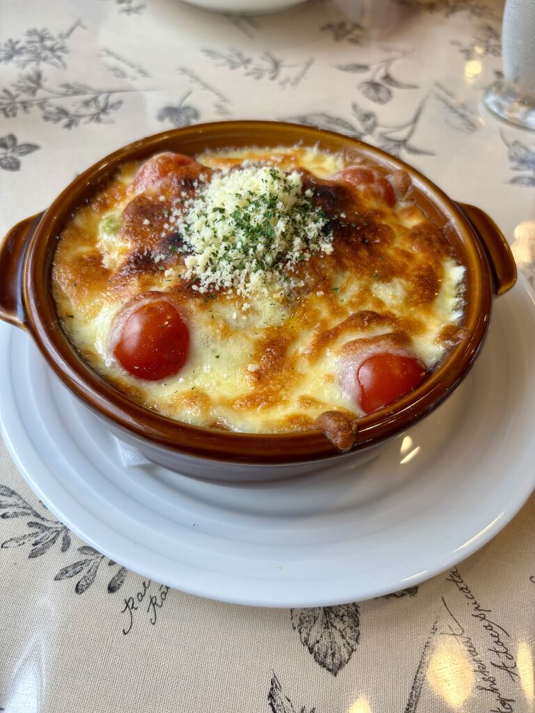 定期的に行くこちら。今回は前回気になったドリアを戴きました。熱々のドリアには茄子やきのこやほうれん草などが入っていました。ボリュームが凄いので母にも手伝ってもらい何とか完食しました。デザート盛りのフルーツは季節によって変わり今回はシャインマスカットが乗っていました。行く度に思うのですが 前菜からデザート盛り合わせまでどれもお料理が丁寧に作られているのでいつも幸せな気持ちになります。 (訪問:2025/09/16)