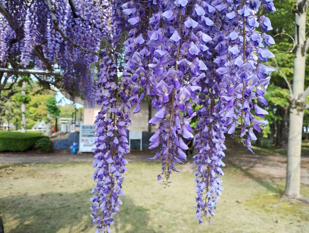 フジの季節…クラブハウスの近くです。目の前で美しいフジの花を楽しむことができました♪園内は新緑も美しいです。ちょっとしたお散歩にもいいですよ〜(*^^*) (訪問:2025/04/26)