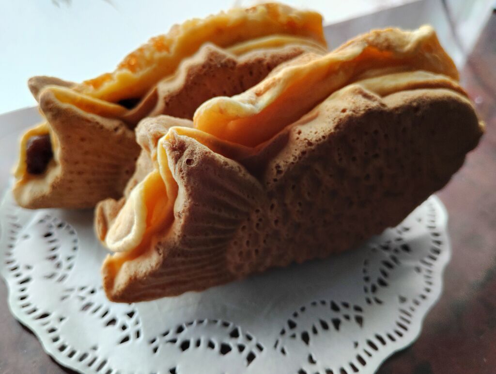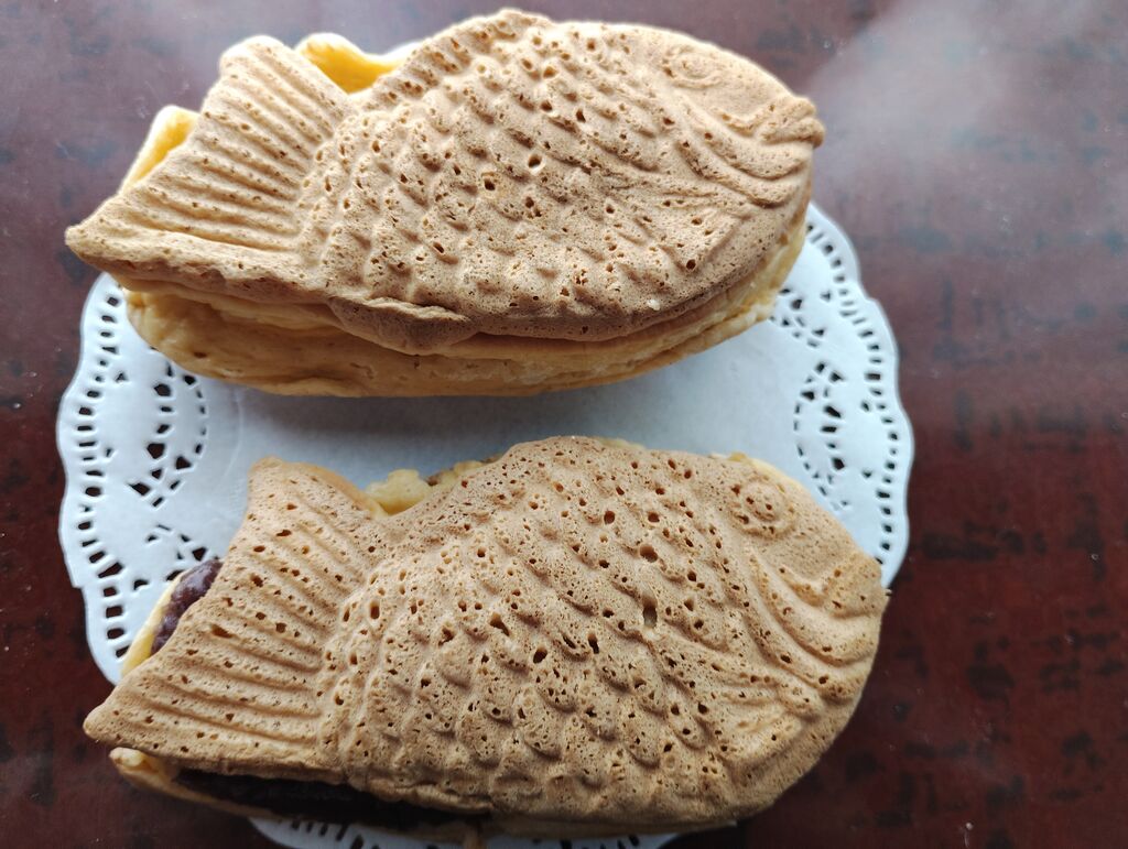 久しぶりにこちらのたい焼きが食べたくて伺いました。メニューにいつもはある、うぐいすやごまあんは隠されていて、小倉・クリーム・ハムマヨの3種類でした。目的は小倉とクリームなので問題なし。ボリュームがあるので1つで満足できるのですが、小倉とクリームのどちらも捨てがたく、ついつい両方買ってしまいます。ふっくらとした生地とたっぷりの餡とクリームが美味しい♪3cmの厚みがあるのでたい焼きが立ちます(笑) (訪問:2026/01/22)