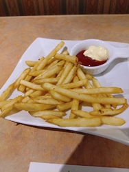 仕事帰りに、フライングガーデンに寄り、食事をしました。今回は、いただいた美味しいメニューについて、お話をしたいと思います。いただいた美味しいメニューは、写真に掲載しました通り、爆弾ハンバーグのダブルにライスお代わり無料、フラガチキン4ピース、クリスピーポテトフライです。主食は爆弾ハンバーグとご飯にして、フラガチキンとクリスピーポテトフライは、おかずとしていただきました。フライングガーデン特製和風ソースのハンバーグはとても美味しく、フラガチキンやクリスピーポテトフライとともに、食が進みます。満足したディナーで、十分にお腹いっぱいになれました。皆さんも、是非、食べてみてください。 (訪問:2026/02/18)