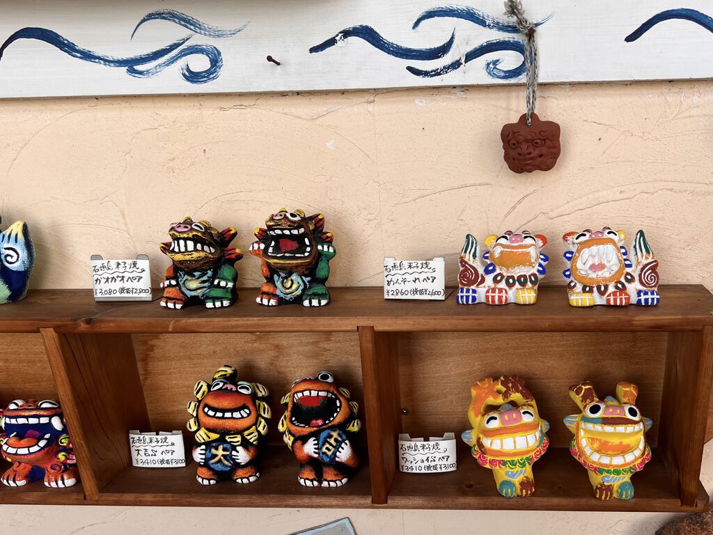 琉球ガラス・グラス2,640円~ シーサー1,650円~ ペアグラスギフトセット5,600円〜 |