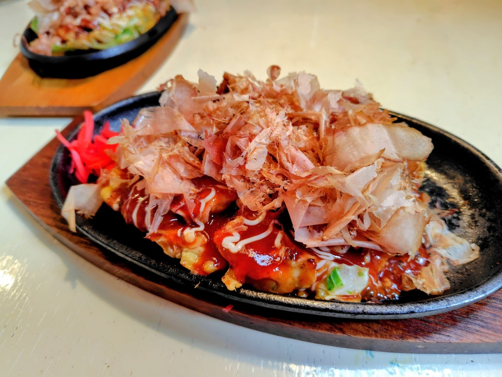先日、某人気テレビ番組で紹介されていて気になってお邪魔しました。この番組で紹介されたという事は絶対混むはずと開店時間に合わせていって大正解、開店前から並んでいたのか1番最後の1席でした。オーダーはもちろん紹介されていたお好み焼きのスペシャル!混んでいたので20分程してボリューム満点のお好み焼きが登場。お好み焼きですが、粉やキャベツはほとんどなく、焼きそば、大きめの海老がゴロゴロ、濃厚チーズたっぷりなので、角切りトマトがよく合いました。ふ〜お腹いっぱいごちそうさまでした。 (訪問:2025/01/18)
