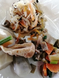 「そすいで買ってきたからお昼に食べよう♪」…と戴きました。[いちご][五目御飯][切り干し大根の煮物][おにしめ][芋がらとしめじの煮物][コーンピザ][ウインナーベーコンピザ][きんぴらまんじゅう]…なんでも土日はテントでの販売があり朝早くから多くのお客さんで賑わっていた…とのこと。美味しそうなご飯におかずに食後のフルーツまで♪みんなでシェアして「いただきまぁ~す♪」こちらのお惣菜はどれを食べても家庭的な味で美味しいんですよ。そすいの郷名物[きんぴらまんじゅう]は細切りのきんぴらがぎっしり入っていて食べ応えありの美味しさです。今季初の苺は甘くて美味しかった~♪いろいろたくさんごちそうさまでした•ᴗ•ꕤ* (訪問:2025/12/14)