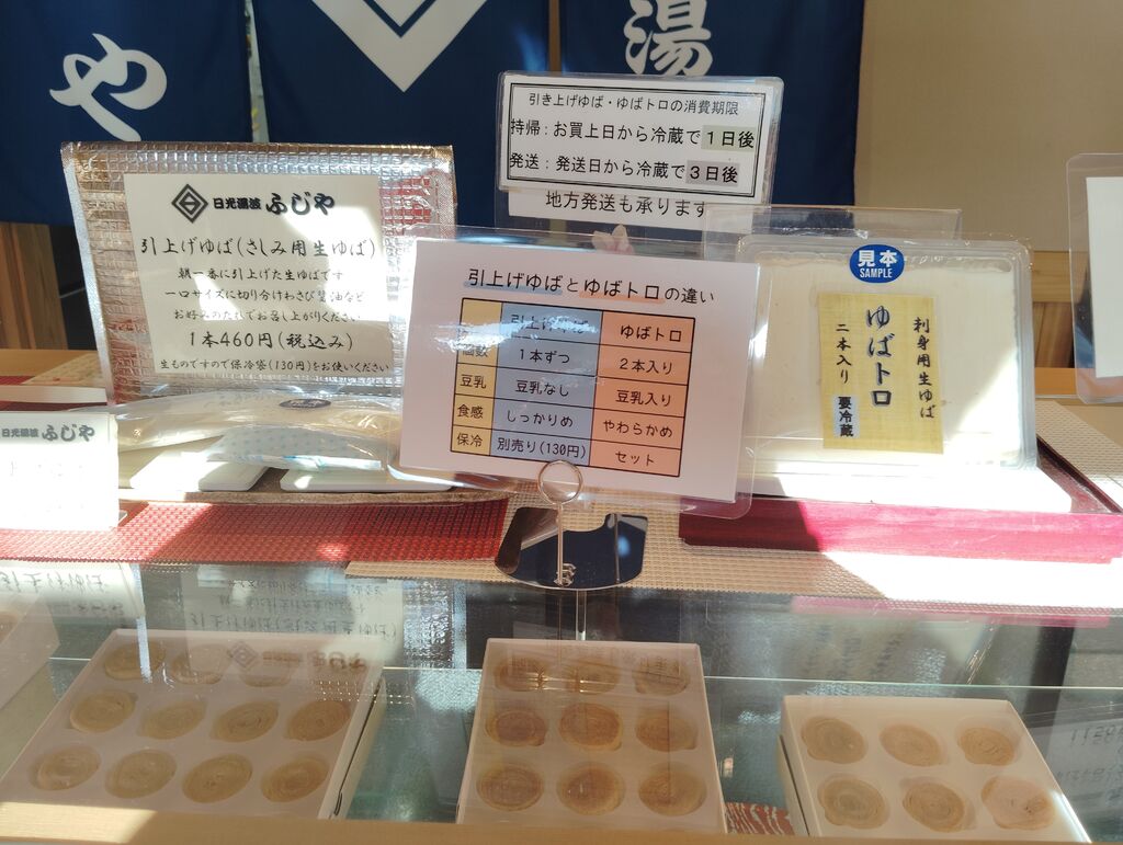 今日は、 日光市 日光ゆば ふじやさんに来ました。湯波を買いに来ました。生湯波と味のついている湯波を購入しました。ふじやさんは、ゆばチっブスを製造販売しているお店です。12月は、湯波の製造がいそがしくみたく、ゆばチっブスは、12月中は、休止しています。生湯波は、豆乳につかった、湯波になるそうです。乾燥湯波やお得感のある、切り落としの湯波も販売されていました。 (訪問:2025/12/30)