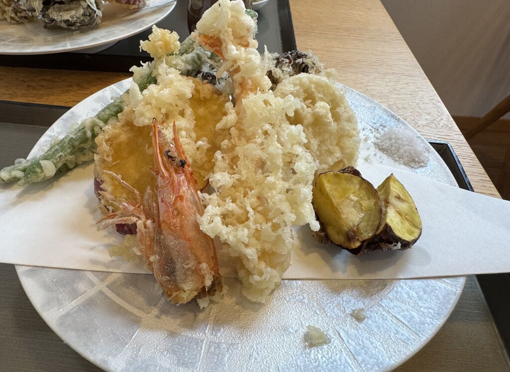 移転後のお店へ野木駅から歩いて(約20分)初訪問。今回は「野菜天せいろ(1600円)」をいただきました。天ぷらは舞茸・茄子・レンコンなど6~7種類あり、どれもが揚げたて・サクサクの食感です。蕎麦は茨城県産のそば粉が使われているとのことで、のど越し感が良く、鰹節の風味豊かな“そばつゆ”との相性もピッタリです。天ぷら・蕎麦どちらも十分な量で、大満足のランチタイムを過ごすことができました。カウンター席から見える水槽の中には、たくさんの車エビが泳いでいました。次回は、このエビの天ぷらもいただきたいと思います。 (訪問:2023/12/14)