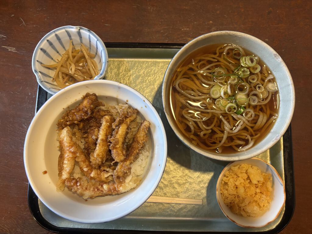 日曜日ランチで訪問いつも賑わっていて大好きなお蕎麦屋さんです。少し太めのお蕎麦は温かいお蕎麦も美味しいです。セットメニュー1,300円を注文。とても寒い日だったので温かいお蕎麦といか天丼を注文。イカがとてもやわらかくて大好きなメニューです。メニューも沢山あって蕎麦もうどんも選べるので家族で行ってもそれぞれ好きなもの食べられるのでおすすめです。 (訪問:2025/12/21)