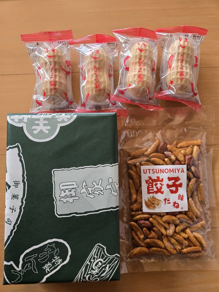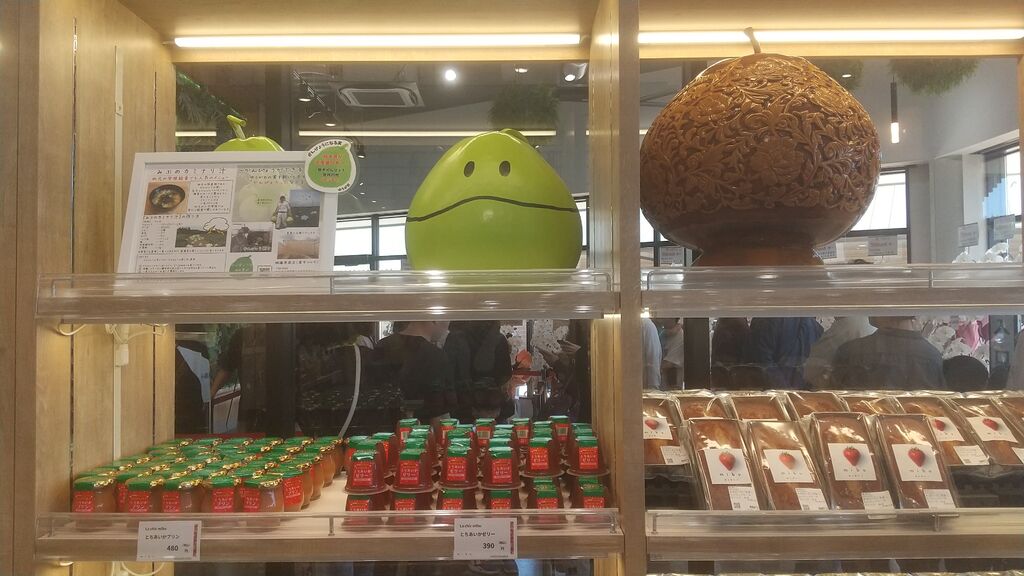 レストランとマルシェがグランドオープン。午前中の早い時間に伺いました。既にお客さんはたくさんいて、駐車場も混み合っていました。お店に着くと生ドーナツのお店の行列が出来ていました。お土産処では、県内の様々なお菓子や名産品がありました。とても種類が豊富で迷ってしまいます。那須の御用邸のシリーズや那須の月、バターのいとこのラスク、那須のラスクなどなど、現地に行かなくても購入できるのは嬉しいです。また近県の茨城の水戸の梅や群馬の旅がらす、福島の柏屋の薄皮饅頭もありました。私は栃木市の金枡屋のかりんとうと、変わり種餃子味の柿の種、他に移動販売車で来ていた千葉のぴーなつ最中を買いました。野菜の直売所も新鮮野菜やイチゴタケノコなど旬のものが並んでいました。2階にはレストランと子供が遊べるスペースがありました。帰りに買い物レシートで抽選会に参加して梨ジュースをいただきました。楽しい買い物になりました。 (訪問:2026/04/12)
