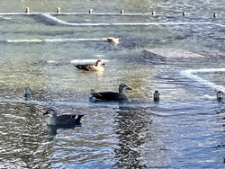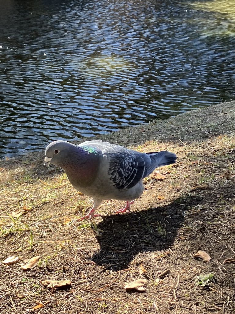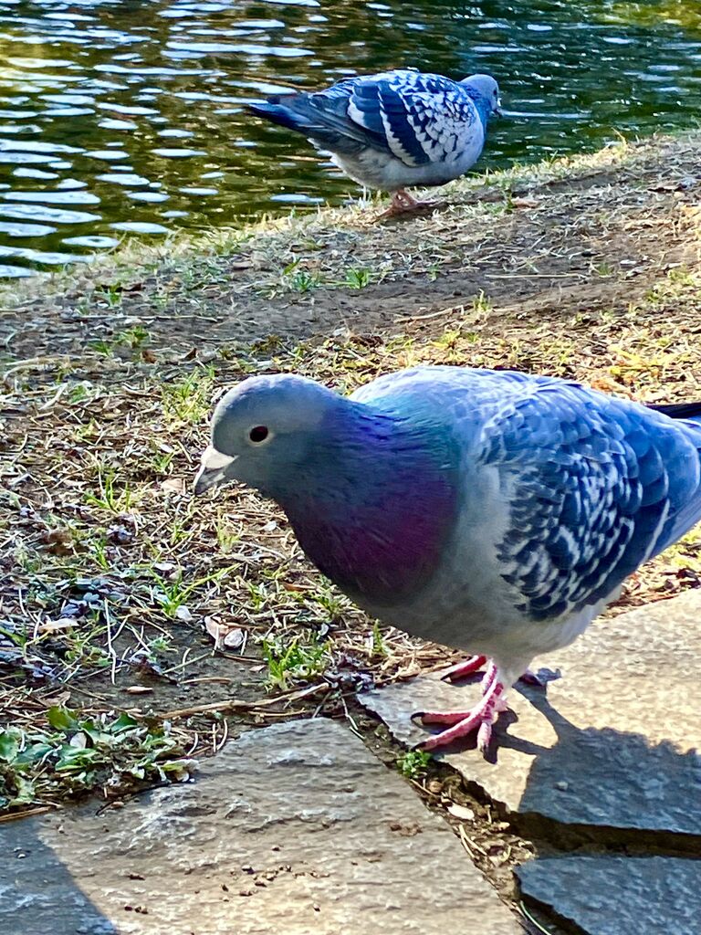 水面のシンチレーションが美しい⤴︎⤴︎初めての公園で僅かな時間でしたが、水鳥、鯉、鳩を眺めながら自然の中で共存している幸福感に浸って来ました(ღˇ◡︎ˇღ)特に鳩さんが人懐こくてドンドン近づいて来る(写真からハミ出た‼︎)餌を貰うことに慣れてしまったのでしょうね(^_^;)因みに餌やり禁止です‼︎色々なポーズをとってくれてサービス精神旺盛な鳩さんでした。2羽の鳩をずっと眺めていると常に一定の距離をとっていることに気付きました!(3枚目の写真)これが彼らのベストポジションなのでしょうね(^^) (訪問:2026/01/22)