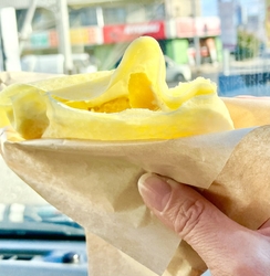 Arigatoでクレープを食べないと年を越せない!というくらい大好きなクレープ屋さんです(^^)この日も駐車場は、ほぼ満車状態。最近は、出来上がるとブザーでお知らせしてくれる様になりました。顔を覚えてくださって「いつもありがとうございます」と何度も言って頂き嬉しい限り(o˘◡︎˘o)♪︎こちらこそサービスもして頂きありがとうございました❣️いつも笑顔で気持ちの良い店主さんです。さてさてメニューを見ると定番の他に限定メニューが10種類以上もありました!その中から【ビターキャラメル生クリーム】のミニサイズにしました。キャラメルと生クリームの甘さが丁度良くとても美味しかったです♪コチラの生クリームは、本当に美味しくて何度頂いても飽きません(最´∀︎`高) (訪問:2023/12/23)