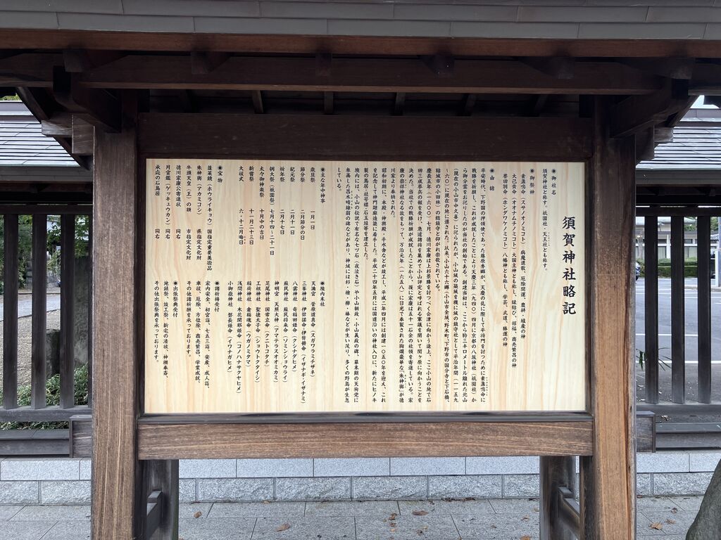 小山市に鎮座する須賀神社に行ってきました。定期的に呼ばれているような気がして訪問しています。今の時期はちょうど七五三の時期で小さなお子さんたちがお参りに来ていました。この神社は1080年以上の歴史を誇る由緒ある神社で、徳川家康ゆかりの神社でもあります。敷地内には樹齢800年にも及ぶモミの木の御神木があります。また、社殿の裏手には10の小さな神社があります。それは天満宮(菅原道真命)学問の神様、三峯神社(伊弉諾命・伊弉冉命)国生みの神様、八雲神社(奇稲田姫命)素盞嗚命の妃神様、蘇民神社(蘇民将来命) 病気退散の神様、神明宮(天照大神)日本で最も尊い神様、足尾神社(国常立命)国土創造の神様、工祖神社(聖徳太子命)工事の神様、稲荷神社(倉稲魂命)商売、稲作の神様、浅間神社(木花開耶姫命)安産の神様、小御嶽神社(磐長姫命)長寿の神様です。お参りすると心が落ち着くので地元の方はぜひ訪れてください。 (訪問:2025/11/02)