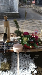 カエルが新たに加わって驚きました。ぽっちゃりしていてキュート(*´︶`*)な姿に和みました。今年1年、大きな怪我や病気をする事なく生きられた御礼を述べに、手を合わせてきました。来年度も平穏無事に過ごせるよう頑張ります...と宣言して帰ってきました。手水舎は、もうお正月ムードでした。 (訪問:2025/12/31)