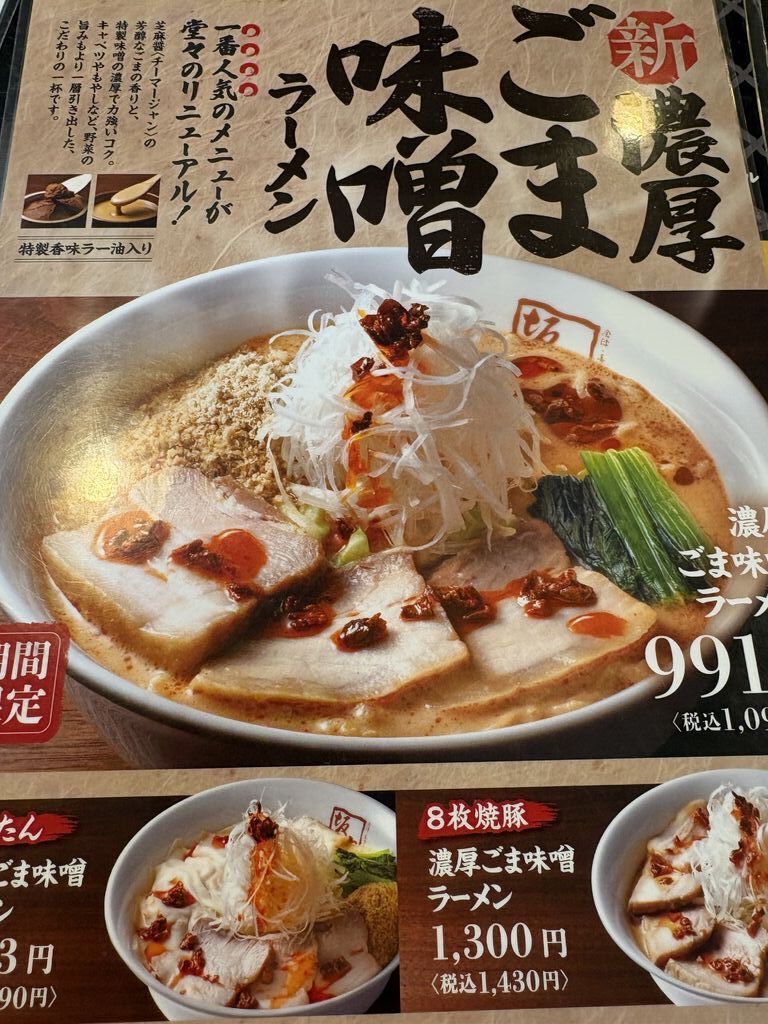 久々の喜多方ラーメン、と思ったらメニューの濃厚味噌ごまラーメンに惹かれてしまいましたww期間限定だし、味噌ラーメンもゴマも好き。小法師さんの麺も好きですねー!濃厚とうたっているだけにコクがありしっかりした味なのですが、最後まで重くならずペロッと完食…白髪ネギなどのお野菜もたくさん入っていてバランス取れているからでしょうか。美味しかったです!餃子や焼豚のテイクアウトもできるそうなので、次回試してみたいです。ごちそうさまでしたー! (訪問:2026/01/13)