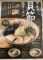 期間限定、貝節塩ラーメンです。三つの貝、鰹節、昆布の出汁。優しいながらも力強い海の旨味。この独特のスープが手揉み縮れ細麺とマッチ。元々はもちもち太縮れ麺の坂内さんとしてはチャレンジング。新たな分野の開拓なのかな。旨いです^_^ (訪問:2025/11/12)