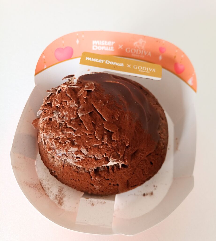 ゴディバとコラボしたドーナツを買いに行きました。「トリュフショコラドーナツ ノワール」です。テイクアウト価格で345円でした。数量限定販売とのことで夕方に行ったら売り切れていたので、午前中に買いに行きました。ケーキのようにゴージャスで贅沢な味わいのドーナツでした。 (訪問:2026/01/31)