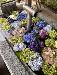 | ◆境内には、早咲・本咲・遅咲の梅が百本余り有り毎年1月上旬~3月中旬まで梅の香りを楽しめます。 ◆6月~7月にかけて夏詣・あじさい祭を開催致します。約50種類、1000株のアジサイがございます。 |