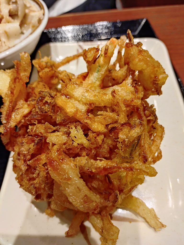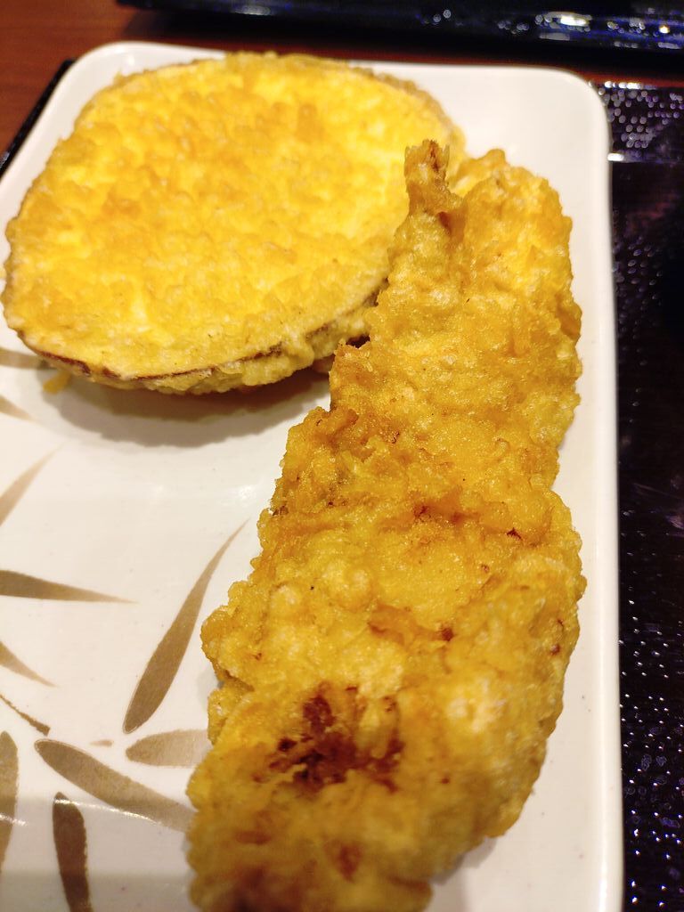 今回の1日半額デーは元今泉店へ夜の混みだす前に行きました。今回は釜揚げ(小)、銀アナゴ天、野菜かき揚げ、ミニ豚玉丼にしました。今回は麺職人の方が麺の茹で上げなどをやっており忙しい時間帯でもテキパキと対応されてました。天ぷらも、ちょうど揚げたてで美味しかったです。 (訪問:2025/10/01)
