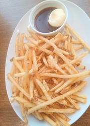「メイプルココッシュ」を食べました。デニッシュ生地にメープルソース、アイスとホイップクリームがトッピングされています。温かい生地にアイスがとろけて染み込んで美味しいです。カリカリポテトとドリンクバーも注文して、ゆっくりできました。 (訪問:2025/09/14)