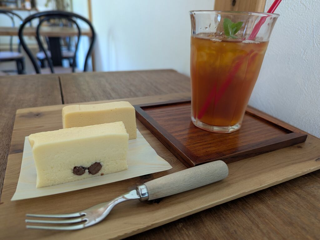 竜化の滝を散策した後に冷たいものが飲みたくて立ち寄りました。メニューを見ると、とても興味を惹く【ななゆチーズケーキセット】1100円(税込み)なるものがあり、迷わずに注文。お好きなドリンクと7色の温泉をイメージした7種類のチーズケーキの中から、その日のおまかせ2種が食べられます。この日はプレーンとあんのう芋のチーズケーキでした。歩き疲れた後の甘いものは最高でした。 (訪問:2025/07/26)