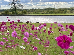 なかなか自分のスケジュールと晴れの日が合わない今日この頃(⁎⁍̴̆Ɛ⁍̴̆⁎)この日は、ピッタリ合ってくれて念願のコスモスを観ることが出来ました!蕾がまだまだあり、暫く楽しめそうです♪3色のコスモスが織り成す世界が美しかったです(o˘◡︎˘o)ミツバチや赤とんぼも遊びに来てましたよっ^_^広大な公園に遊具もあり、子供達をのびのび遊ばせるには、絶好の場所ですね!ここでは、空が大きく見えて壮大⤴︎⤴︎水面がキラキラ光っている情景も素敵でした(ღˇ◡︎ˇღ) (訪問:2025/10/17)