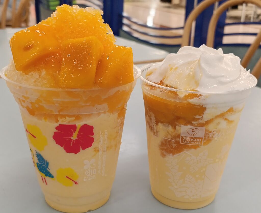 期間限定のハワイアン マンゴーフェア♫彼と一緒に立ち寄り食べ比べしちゃいました(笑)シェーキの方はホイップクリームと大きめにカットしたマンゴーが入ってい、クリームとシェーキを混ぜ混ぜすると濃厚でまろやかな味に味変~(笑)かき氷の方はマンゴーの果汁入りシロップがかかっていて、シェーキと同様にカットしたマンゴーがトッピングでかき氷とシェーキを混ぜ混ぜして行きシャリシャリなめらかな味に味変~(笑)食感も楽しめるシェーキでした~(ૢ˃ꌂ˂⁎)どちらも夏らしい味で満足度タップリでした♫ (訪問:2025/09/02)