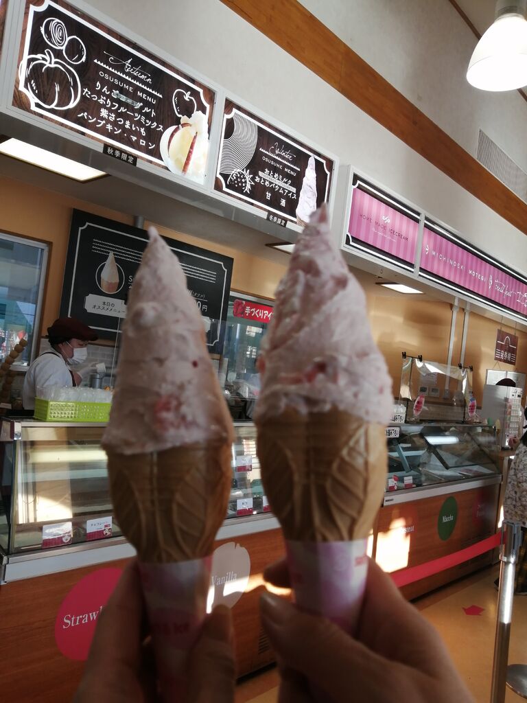 友人と茨城県へ遊びに行った帰り道…「苺のソフトクリーム食べに行こっ♪」…ってことになり行ってきました。この時期になると毎年必ず食べるこちらの[おとめミルクアイス]…注文してから苺をinしてまじぇまじぇしてくれます。見て見て~♪美味しそうでしょ⤴⤴これが美味しいのなんの!そのまんま苺の果肉とミルクアイスが相まってめちゃめちゃ美味し~い♡それから直売所に立ち寄りました。[柚子]が有名な茂木なのでたくさんの柚子商品が並んでいました。そんな中お買い得商品発見![肉類焼きそば][山菜きのこおこわ][赤飯&山菜きのこおこわセット]をGET!明日のお昼に食べよ~♪ (訪問:2026/01/25)