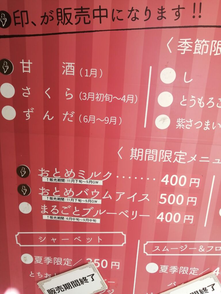 | おとめミルクアイス(冬期限定) | 350円 |