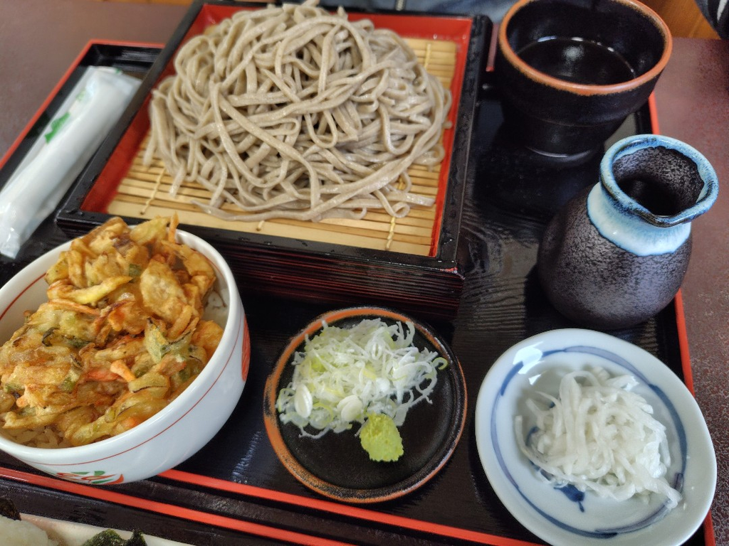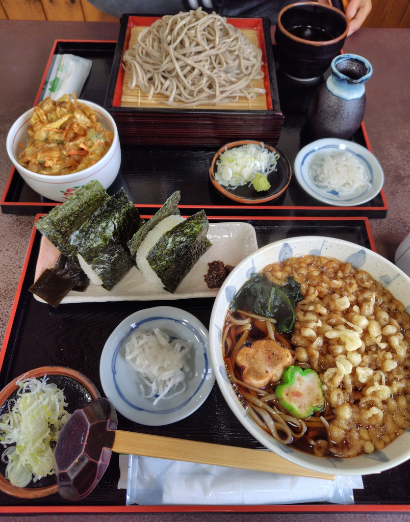 お蕎麦が食べたくなり尚仁さんへ行ってきました。もりそば大盛とミニかき揚げ丼、たぬきそば(温)とおにぎりを注文しました。おにぎりは初めてで、具無しにぎりに山椒ミソと昆布が付いてきていただくおにぎりでした。ピリッと山椒が効いたミソ美味しかったです。 (訪問:2025/11/09)