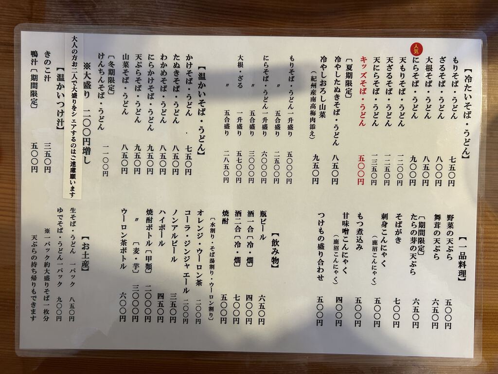 | お持ち帰り用生そば・うどんそば(つゆ付き) | 800円 |