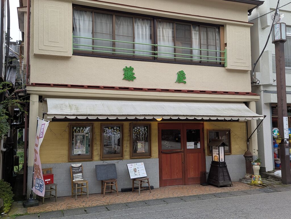 塩原温泉街にある『藤屋』さんでご当地グルメのとて焼きを食べました。【玄米クリームのパフェとて】は添加物、化学調味料、白砂糖不使用の健康的なとて焼きでした。フルーツたっぷりで生地は厚みがありフワフワで優しい食感です。ドリンクセットで注文いたしましたので、コーヒーの【玄米コーヒー】も一緒に楽しみました。普通のコーヒーよりも茶色っぽい色で酸味が強くほろ苦く甘いデザートには合うコーヒーでした。とて焼きはテイクアウトもOKですので、温泉街を散策しながら食べるのも良いかもしれませんね。 (訪問:2025/09/10)